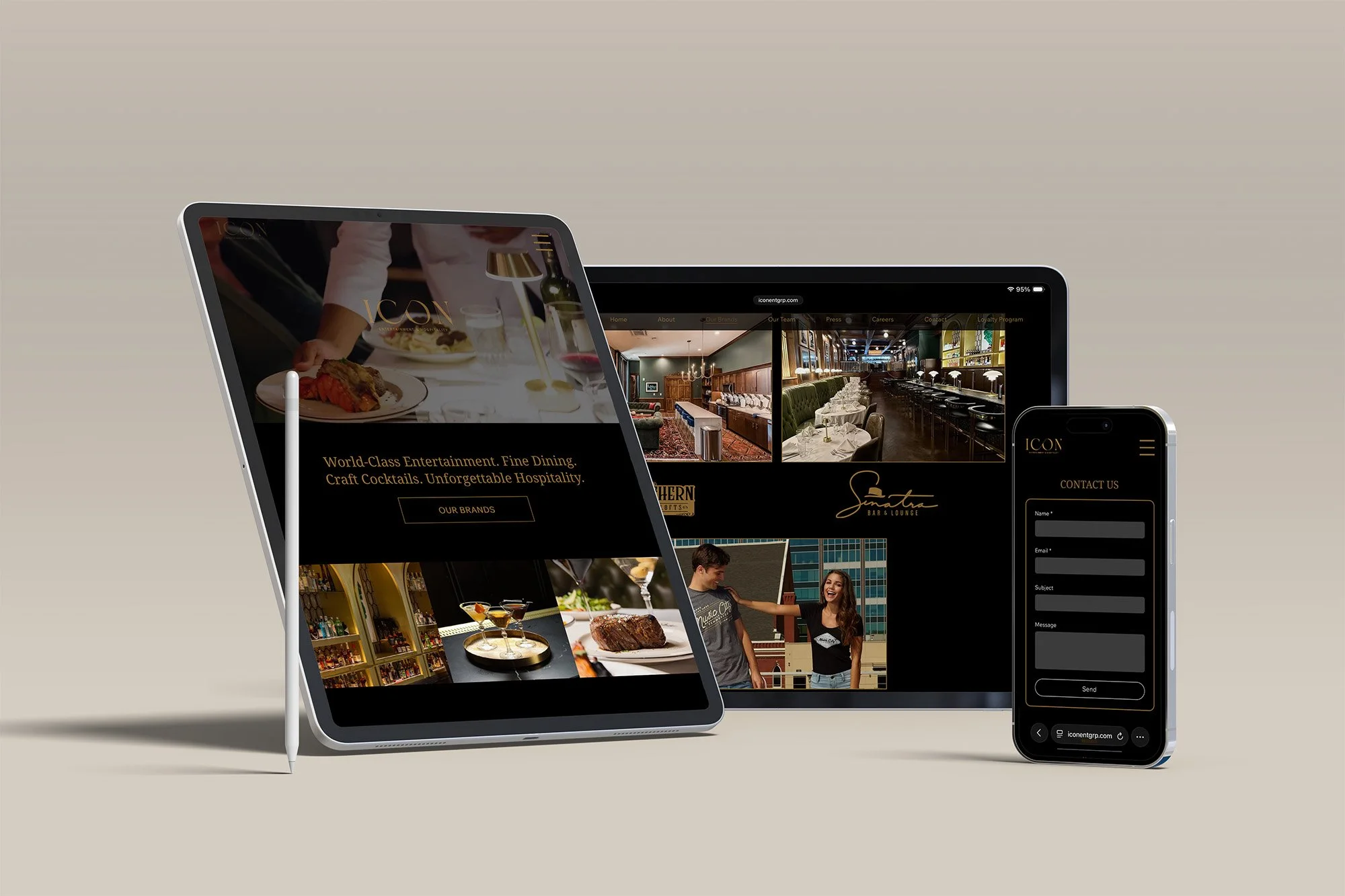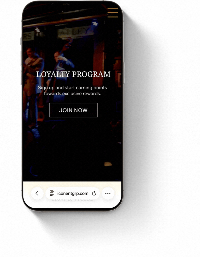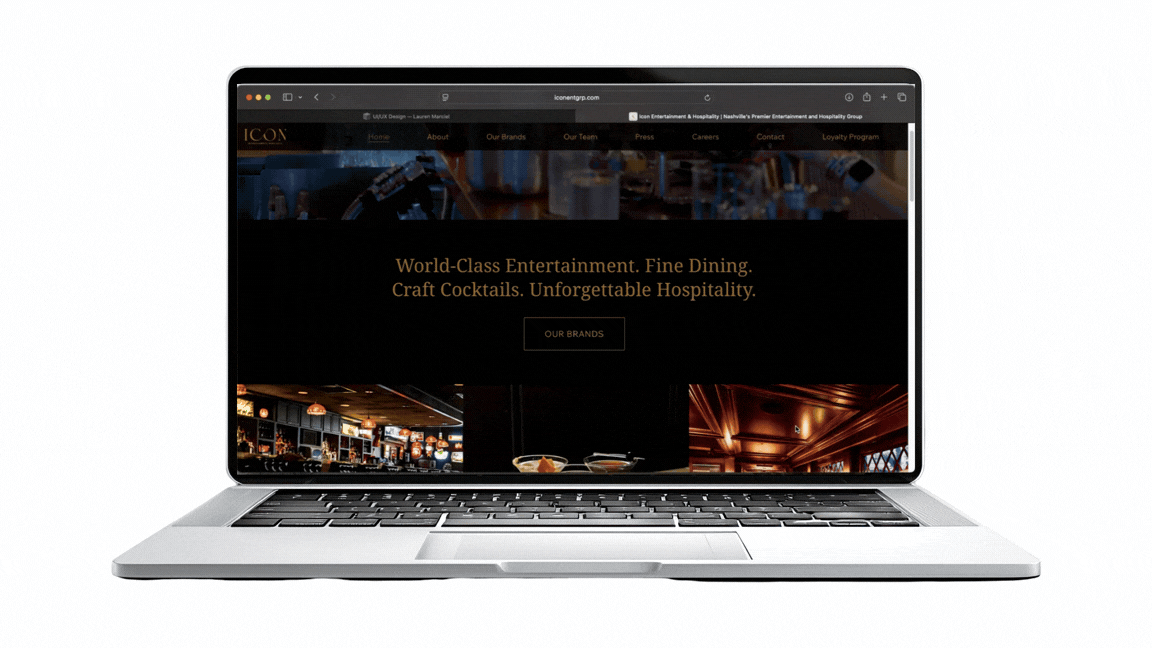 I redesigned the Icon Entertainment Group website with the goal of modernizing an outdated digital presence and increasing overall site traffic. The previous site lacked visual energy and clear user flow, limiting engagement and discoverability.